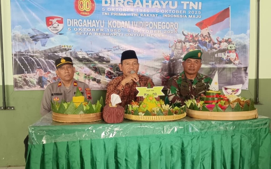 “Kita patut bangga dengan kerjasama selama ini dengan TNI dalam melaksanakan tugas pengayoman kepada masyarakat. Forkopincam Plus yang ada di Kecamatan Ngawen, yaitu Koramil, Polsek, KUA, Puskesmas, Korwil Bidang Pendidikan Kecamatan Ngawen, serta unsur Kepala Desa, bisa sinergi dalam melangkah. Hari ini, Minggu, 5 Oktober 2025, TNI merayakan HUT ke-80 dan kita tentu ikut bangga dan bersyukur atas segala jasa pengabdian TNI untuk negeri ini,” jelas Camat Ngawen Poniran.