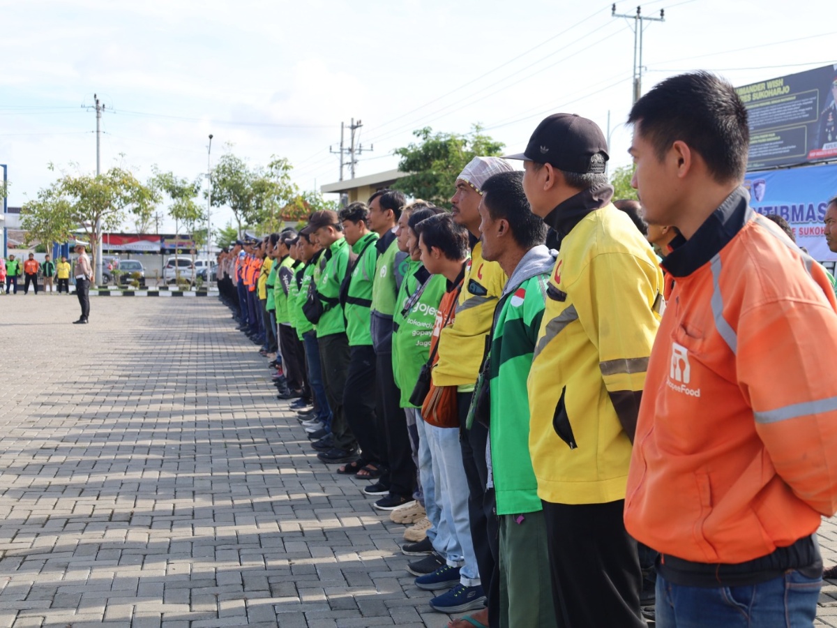 Kegiatan tersebut dipimpin langsung oleh Kapolres Sukoharjo, AKBP Anggaito Hadi Prabowo, dan diikuti sekitar 70 peserta dari berbagai komunitas ojek online di wilayah Sukoharjo.
