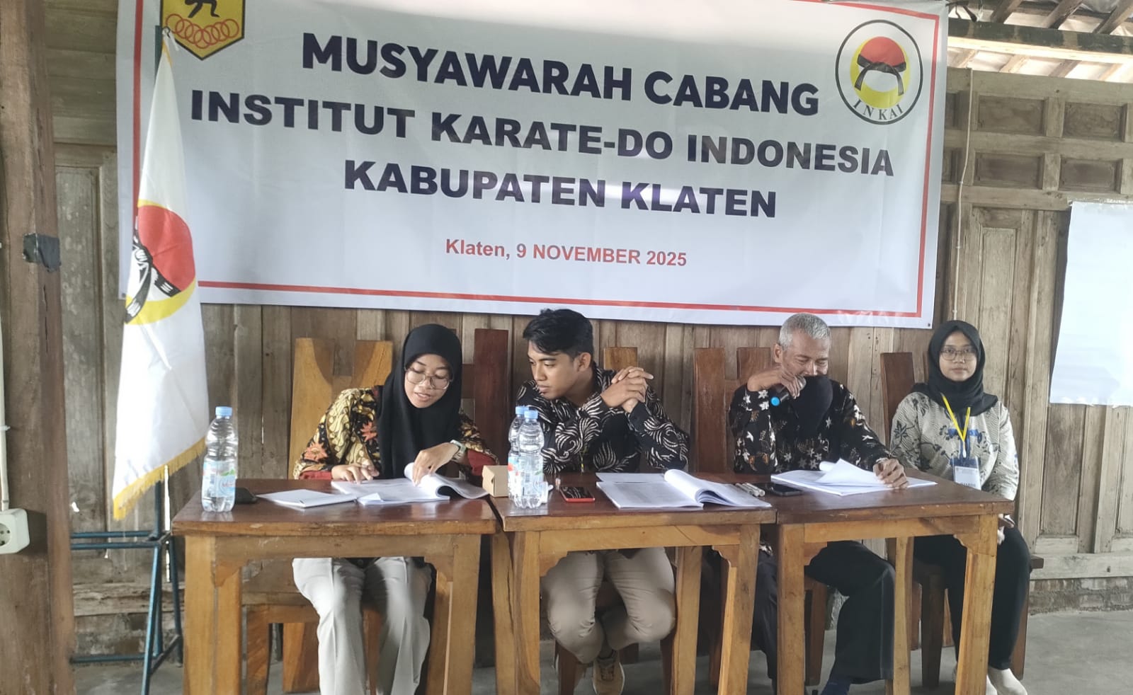 KLATEN, POSKITA.co – Akhirnya Bambang Sutadi, AMd.Eng. kembali terpilih menjadi Ketua Institut Karate Do Indonesia (INKAI) Kabupaten Klaten periode 2025-2029 dengan cara pemilihan tertutup di Kopi Story, Gayamprit, Klaten Selatan, Minggu (9/11/2025) siang.
