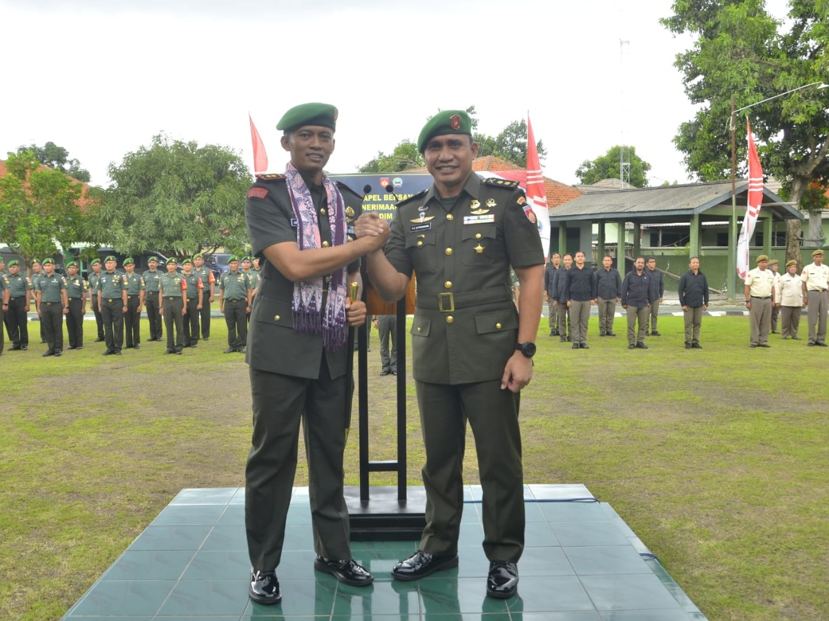 SOLO, POSKITA.co – Kodim 0735/Surakarta menggelar tradisi satuan, sambut pejabat Komandan Kodim Baru Letkol Inf Arief Handoko Usman beserta istri. Seluruh anggota Kodim 0735/Surakarta baik Militer maupun PNS menyambut dengan tradisi penerimaan warga baru serta pelepasan Pejabat Dandim lama yang dilaksanakan di Makodim 0735/Surakarta, Jln. A yani No.349, Kelurahan Kerten, Kecamatan Laweyan, Kamis, 20 November 2025.