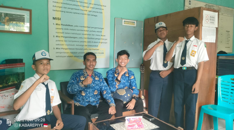 Keterangan Foto Atas: Ketua OSIS SMPN 2 Gantiwarno Rehan Adi Pratama bersama tiga temannya pengurus OSIS salam tangguh bersama Waka Kesiswaan Muhammad Abdul Kholiq Wakhid, SPd saat ditemui redaksi, Senin (17/11/2025) pagi.