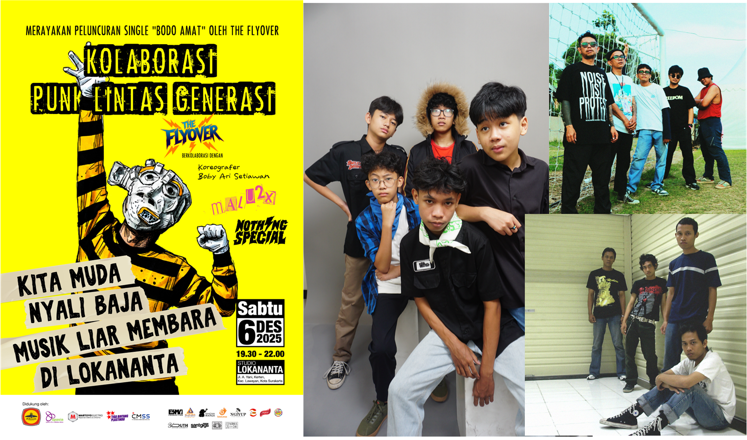 “Kolaborasi Punk Lintas Generasi”, The Flyover menggandeng veteran melodic punk Nothing Special (Gen X) dan unit proto-punk enerjik Malu2x (Gen Y/Millennials). “Bodo Amat”: Anthem Ketangguhan Gen Z dan Alpha Single “Bodo Amat” adalah seruan lantang tentang resiliensi.