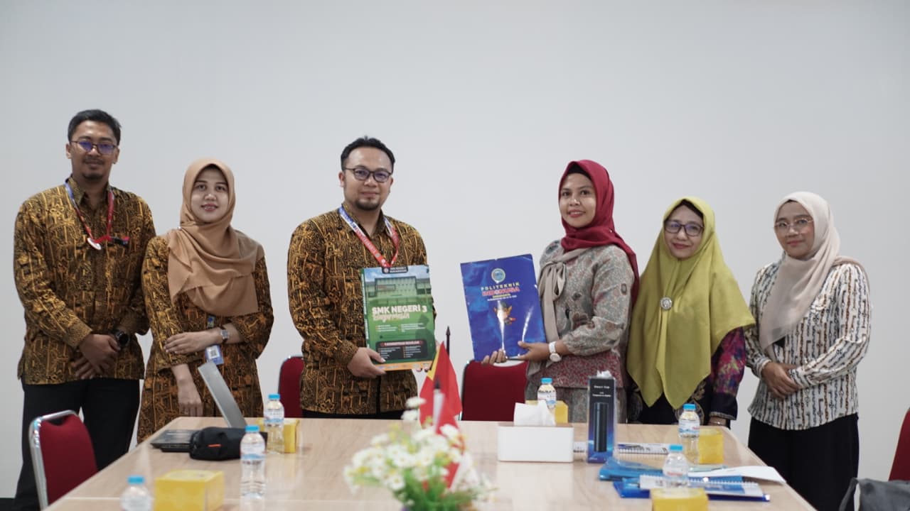 Rombongan SMK N 3 Banjarmasin dipimpin oleh Wakil Kepala Bidang Humas, Megayulia, S.Pd Bersama jajaran pimpinan serta guru pendamping dari program studi terkait, yakni, Ketua Program Manajemen Perkantoran dan Layanan Bisnis, Nanik, serta Ketua Program Studi Perhotela, Fahmi.