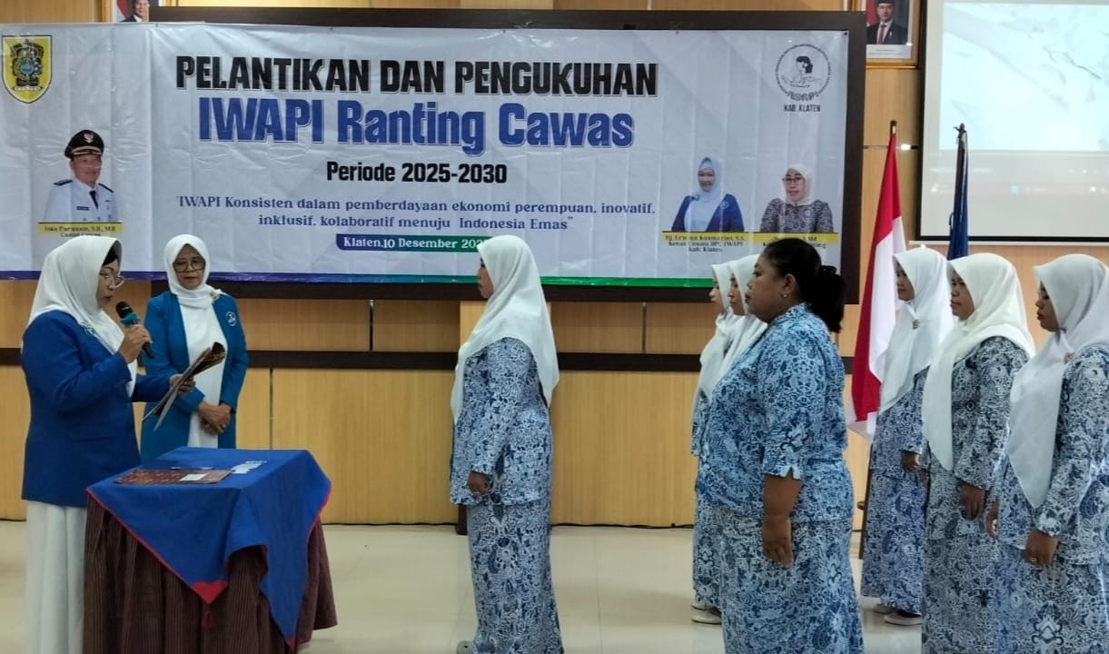 KLATEN, POSKITA.co – Dewan Pengurus Cabang (DPC) Ikatan Wanita Indonesia (IWAPI) Kabupaten Klaten secara perdana atau pertama kali melantik pengurus IWAPI Ranting Cawas yang telah diadakan di lantai 2 aula Kecamatan Cawas, Rabu (10/12/2025) pagi. Langkah ini akan diikuti IWAPI di Ranting Kecamatan lainnya.