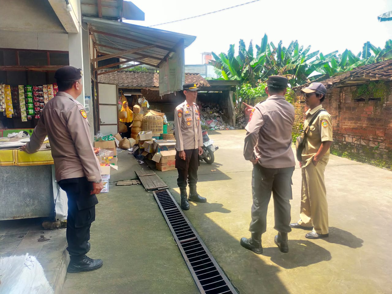 Setibanya di lokasi, Kapolsek Bendosari bersama anggota langsung berkoordinasi dengan pengelola pasar sebelum melaksanakan pengecekan.