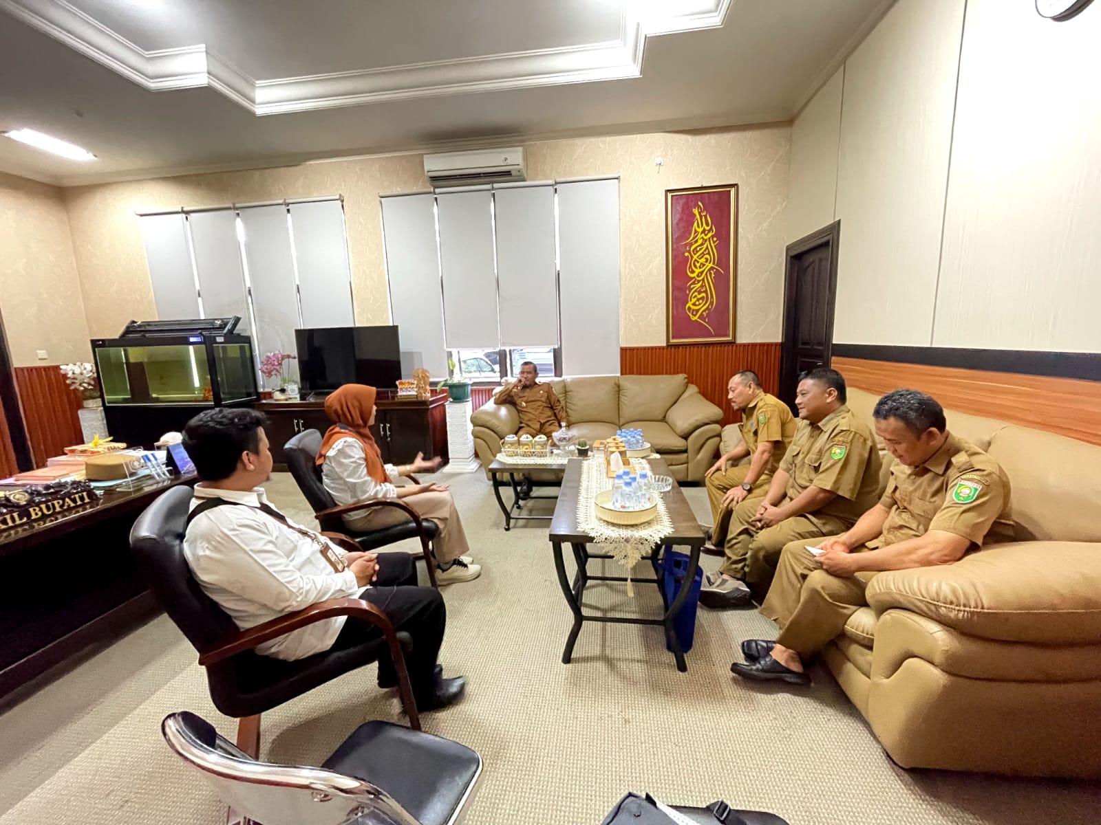 Rombongan dari Politeknik Indonusa Surakarta Eni Lestari, Muhammad Kais, dan Sriyono Ali Maskhuri. Kunjungan tersebut diterima secara langsung oleh Wakil Bupati Sumbawa, Drs. H. Mohamad Ansori, beserta jajaran Pemerintah Kabupaten Sumbawa.
