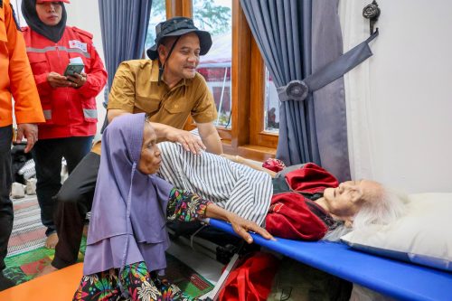 Gubernur Ahmad Luthfi menyapa lansia warga terdampak tanah gerak.