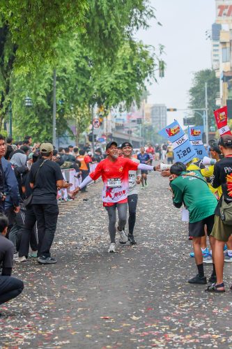 Dalam kesempatan itu, Sumarno tak hanya hadir sebagai pejabat yang membuka acara. Ia turut turun ke lintasan dan mengikuti kategori Half Marathon (21K), bahkan mengaku mencatatkan rekor pribadi.