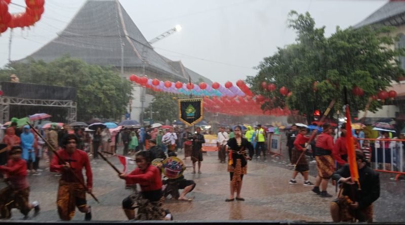 Dalam situasi hujan deras, ribuan warga memadati Kawasan Pasar Gede untuk menyaksikan kirab budaya yang menjadi simbol Akulturasi budaya Jawa dan Tionghoa.