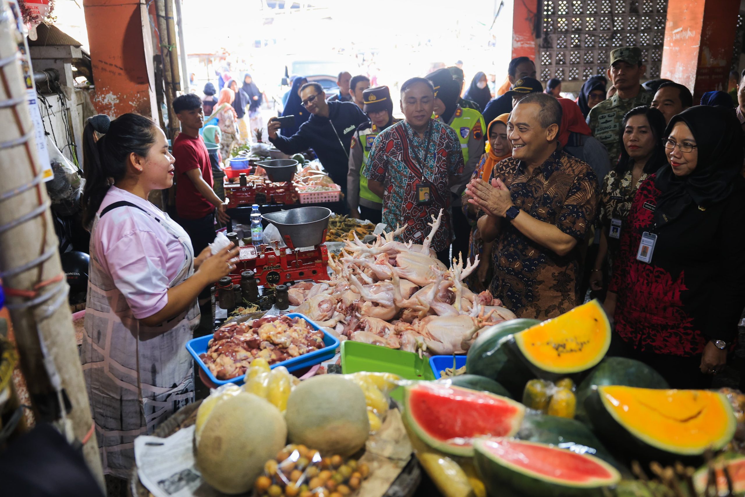 Dalam tinjauan itu, Luthfi berkeliling pasar lalu berdialog dengan sejumpah pedagang dan pengunjung untuk menanyakan mengenai harga-harga pangan.