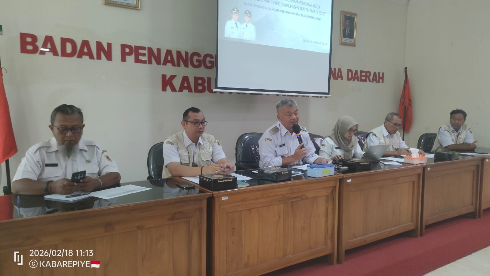 KLATEN, POSKITA.co – Dalam rangka proses penyusunan Rencana Kerja Pembangunan Daerah (RKPD) Badan Penanggulangan Bencana Daerah (BPBD) Kabupaten Klaten 2027, maka Kepala Pelaksana (Kalak) BPBD Kabupaten Klaten Syahruna, SH CN mengadakan Forum Perangkat Daerah di ruang pertemuan lantai 1 BPBD Klaten, Rabu (18/2/2026) pagi.