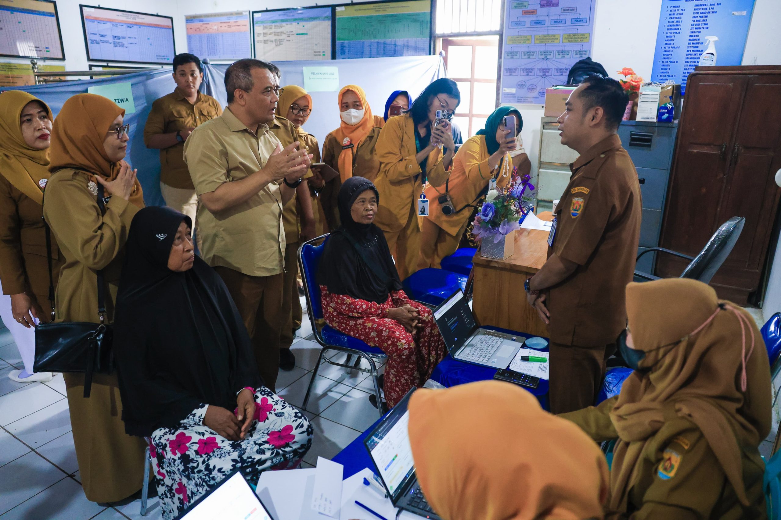 Selanjutnya ia berdialog dengan masyarakat yang melakukan cek kesehatan gratis melalui program Speling dan Cek Kesehatan Gratis (CKG).