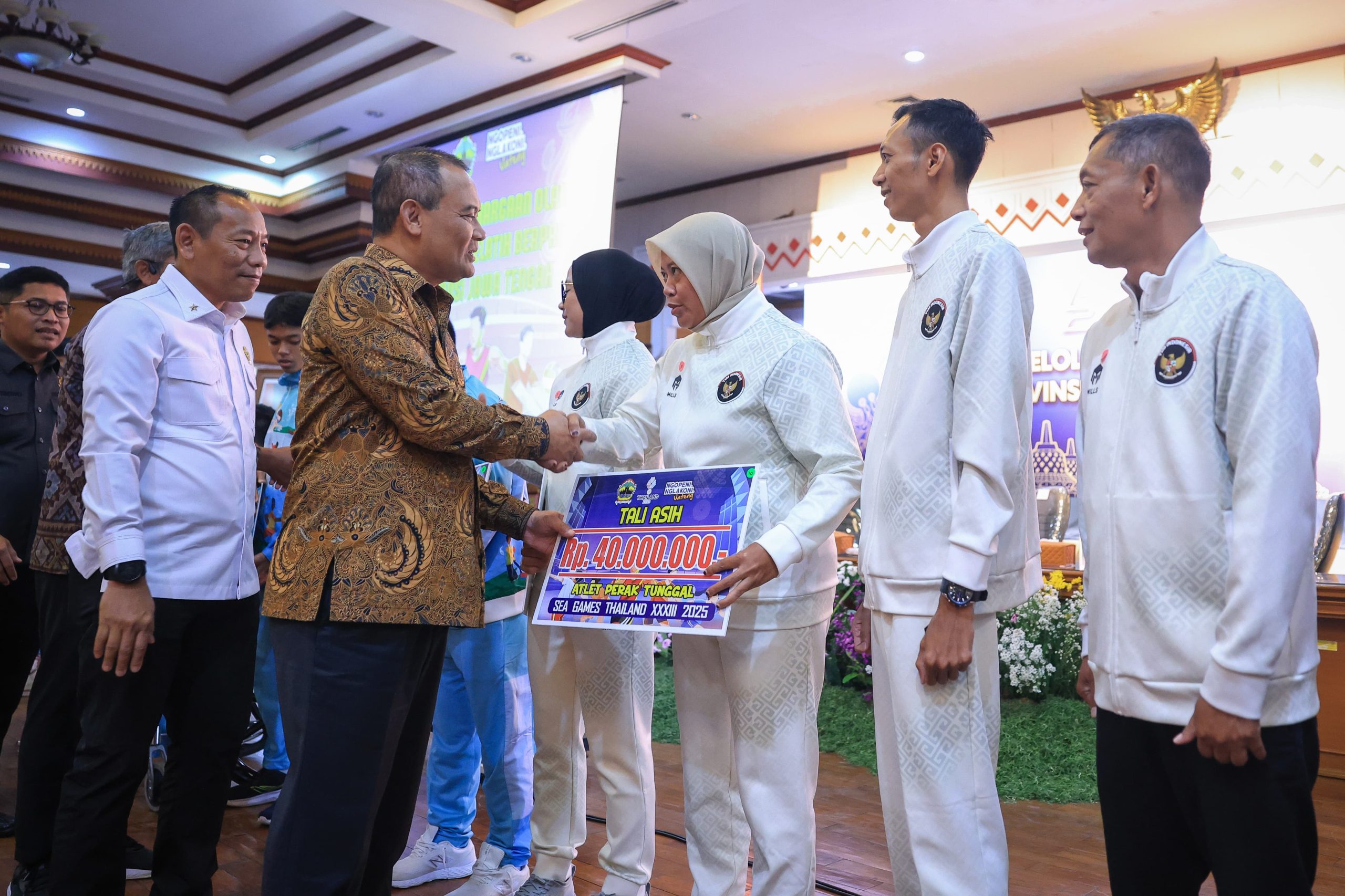 Secara simbolis, tali asih itu diberikan oleh Ahmad Luthfi kepada kepada perwakilan atlet di Aula Gedung Bapenda Provinsi Jawa Tengah, Kamis, 5 Maret 2026.