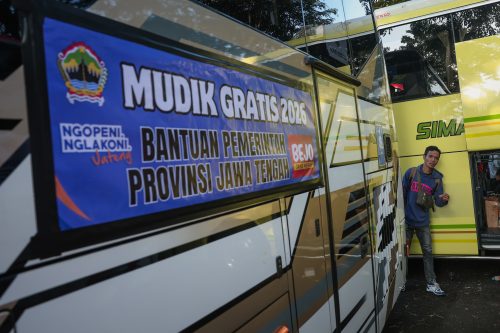 Mudik Gratis dengan tagline “Mudik Gampang Balik Tenang” ini merupakan kerja sama antar Pemprov Jateng, 35 pemerintah Kabupaten/Kota, Bank Jateng, serta pihak swasta untuk bahu-membahu membantu masyarakat yang akan mudik ke kampung halaman.