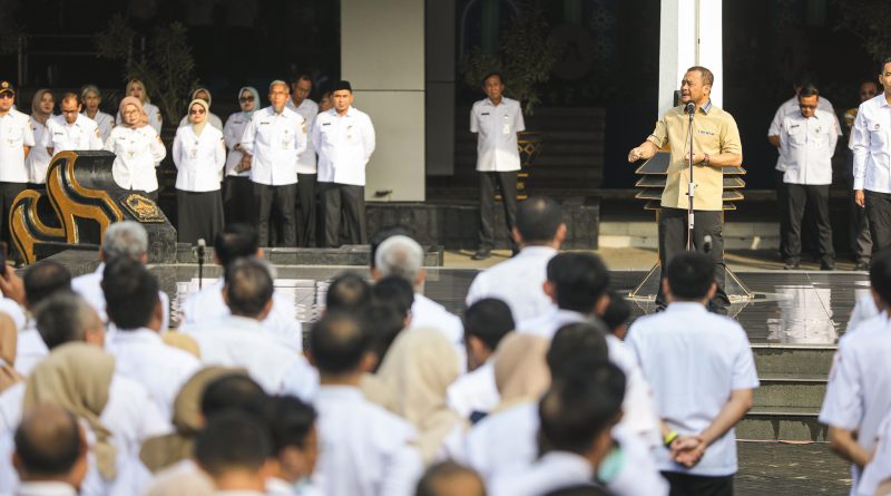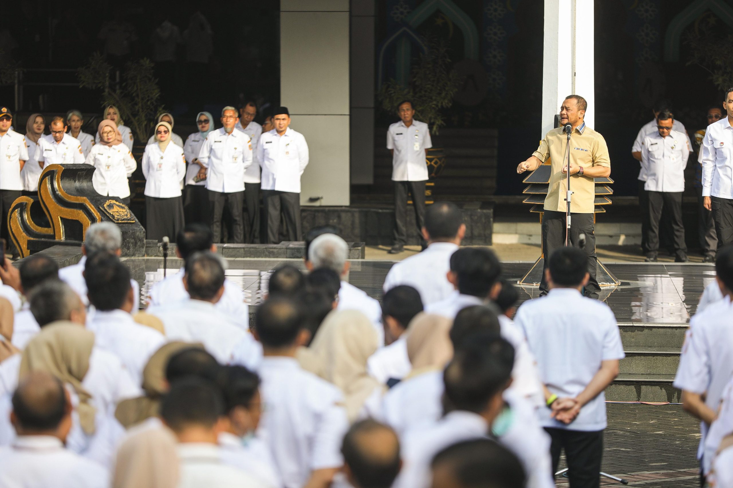 Gubernur Ahmad Luthfi saat apel kerja bersama jajaran ASN, di halaman kantor Gubernur Jateng. Foto Humas Jateng