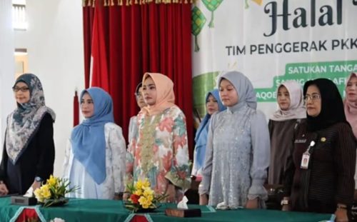 Kepala Dispermasdes Klaten Dra. Hj. Wahyuni Sri Rahayu, MSi hadir dalam acara halal bihalal keluarga besar TP PKK Kabupaten Klaten di Gedung Wanita tahun 2026.