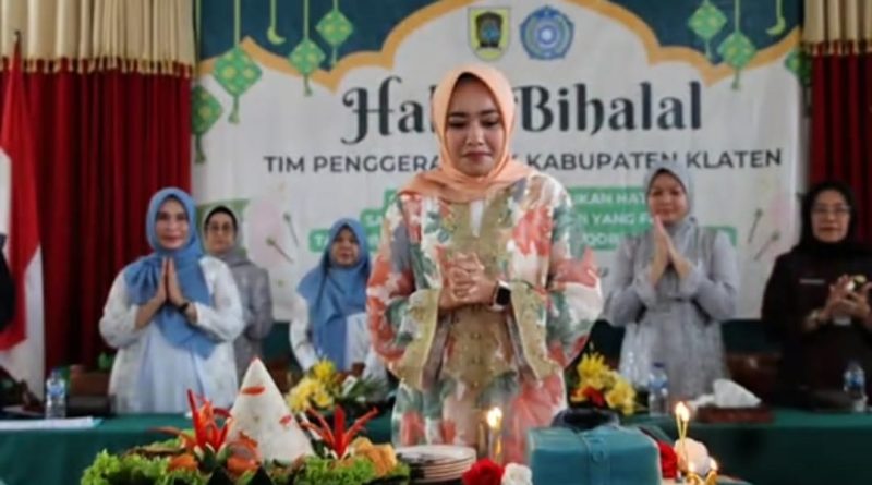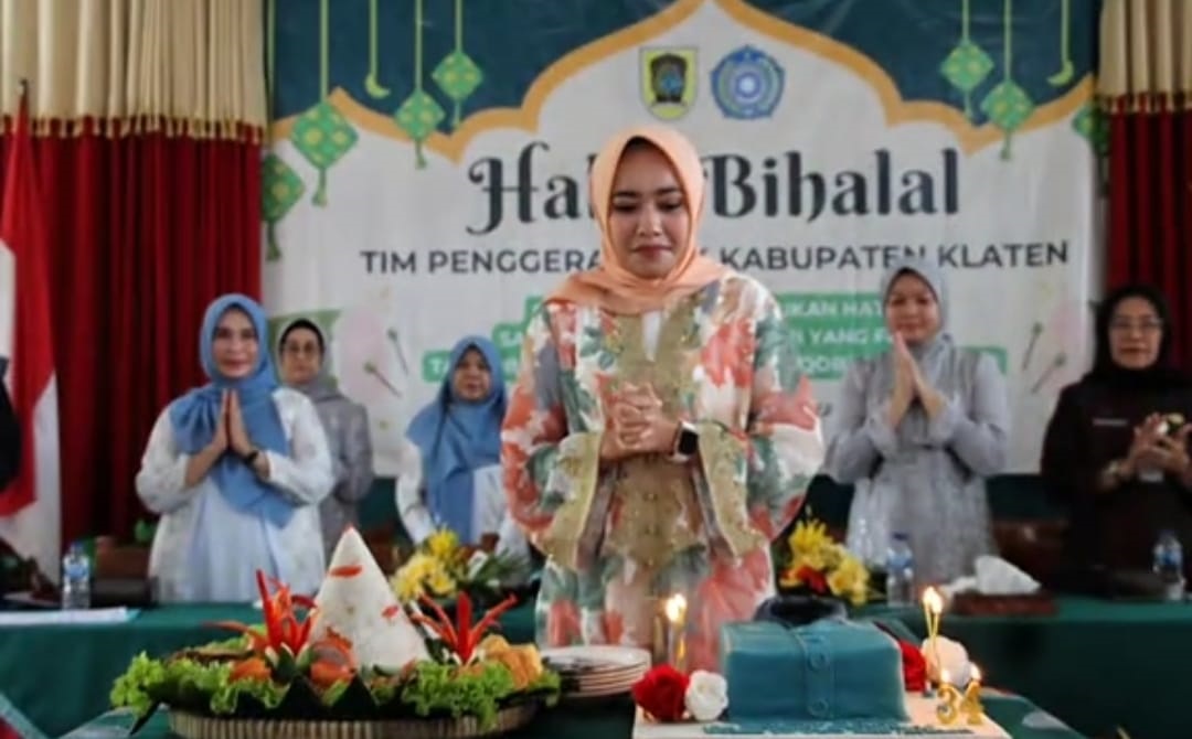 “Acara halal bihalal ini menjadi agenda tahunan saat lebaran dengan saling memaafkan atas segala salah dan kekhilafan selama ini. Kebetulan saat halal bihalal ini Ketua TP PKK Kabupaten Klaten Ny. Fahrani Hamenang milad atau ulang tahun ke-34, jadi usai pengajian ada acara tambahan potong tumpeng. Acara ini ada pembacaan ikrar halal bihalal yang dipimpin Ny. Sri Nugroho dan ditirukan semua tamu undangan,” jelas Ny. Sarmini.