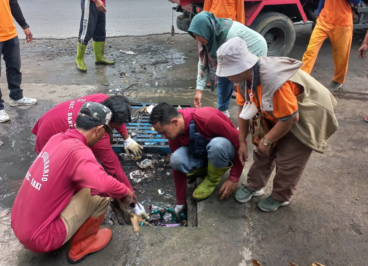 Aksi tersebut melibatkan pemerintah desa Gentan, desa Purbayan, dan desa Makam haji saling bahu membahu membersihkan aliran sungai tersebut, Rabu, 8 April 2026.