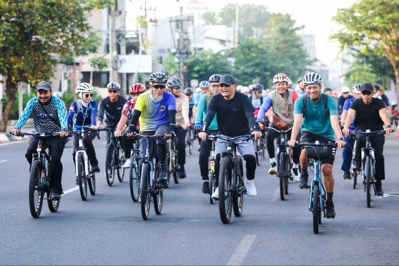 Ahmad Luthfi bersama sejumlah kepala Organisasi Perangkat Daerah (OPD) pemerintah setempat, berangkat bekerja ke kantor dengan naik sepeda. Foto: Humas Jateng.