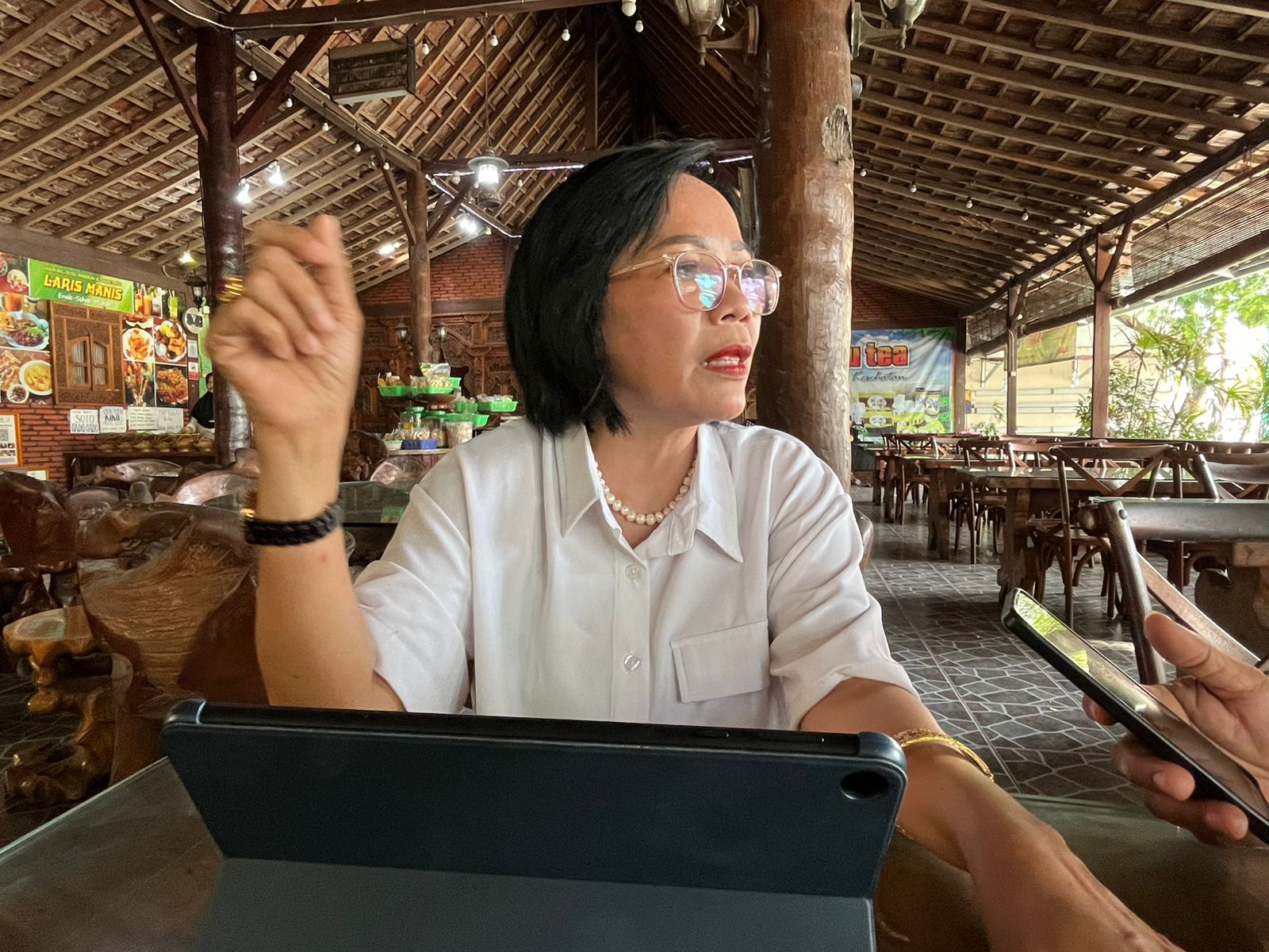 Ketua DPD KAI Jateng, Asri Purwanti SH, MH, CIL, CPM yang ditunjuk sebagai kuasa hukum keluarga siswa SMP yang tewas di tangan teman sekolahnya, saat ditemui di Laris Manis, Jajar, Solo, Sabtu (11/4). (foto dokumentasi)