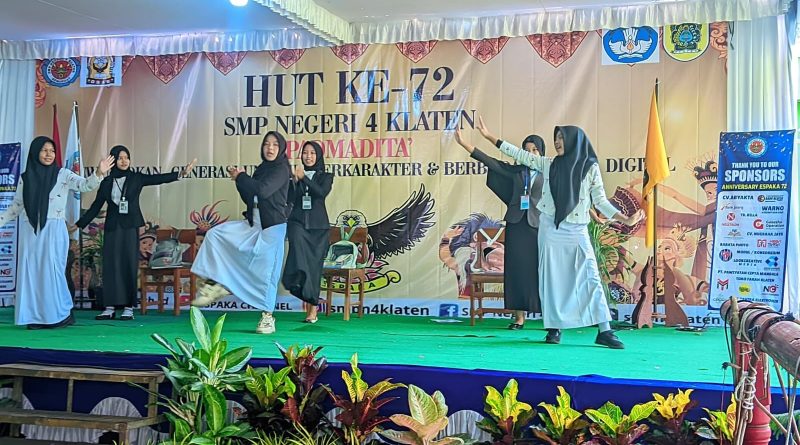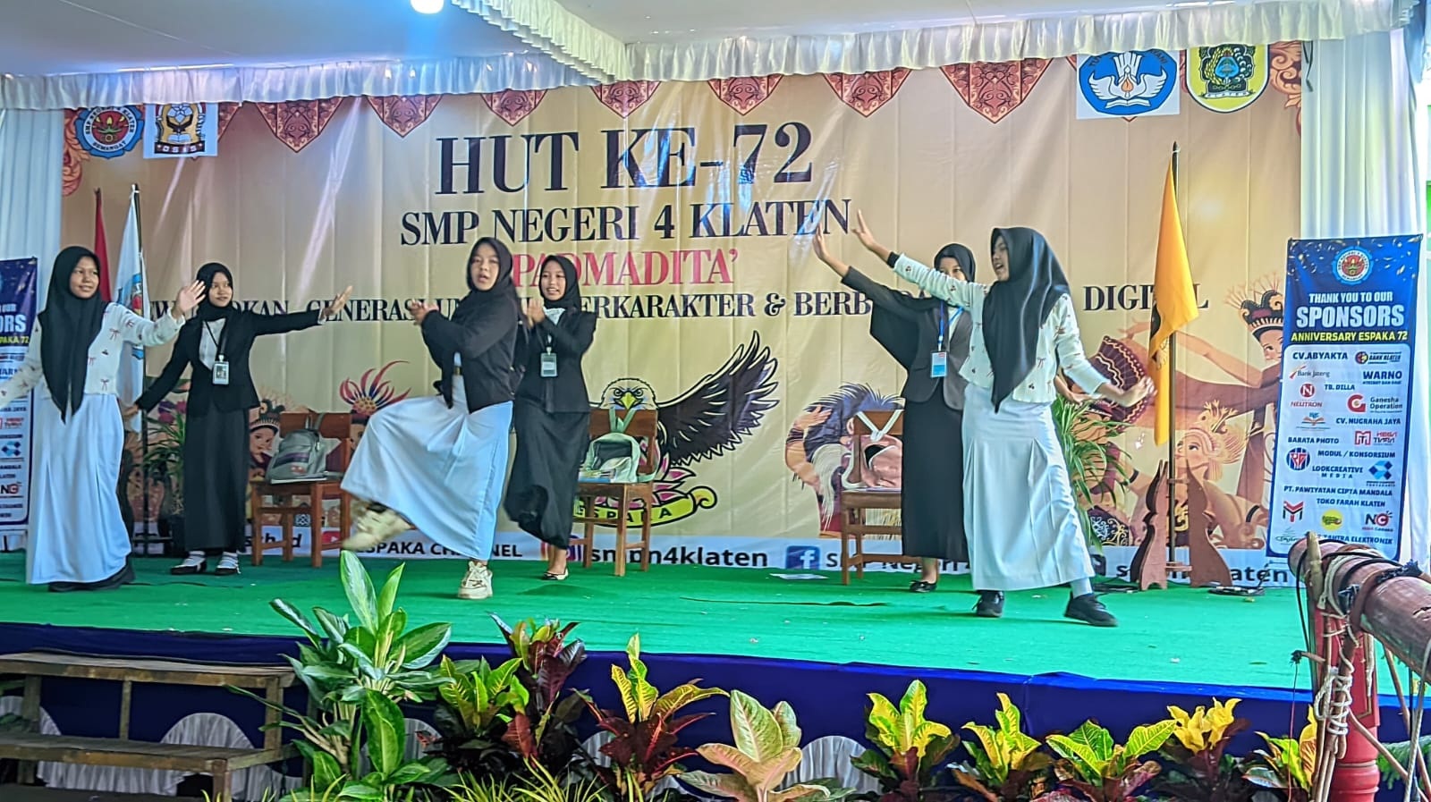 Keterangan Foto: Penampilan siswa dalam gerak dan lagu ajang pentas seni HUT ke-72 SMPN 4 Klaten tahun 2026.