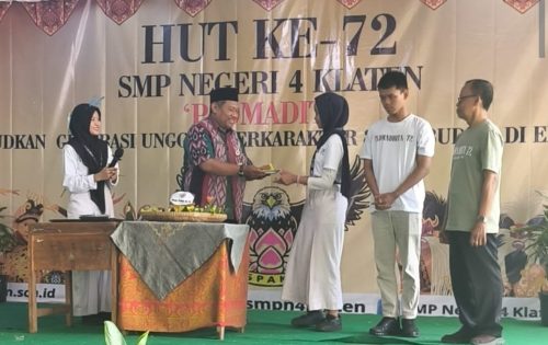 “Dengan melihat HUT ke-72 SMPN 4 Klaten, sudah tidak muda lagi. Semoga sekolah ini ke depannya akan semakin maju berkembang. Sesuai tema yang diangkat, yaitu generasi unggul, berkarakter dan berbudaya di era digital bisa diwujudkan secara nyata,” ungkap Sugeng.